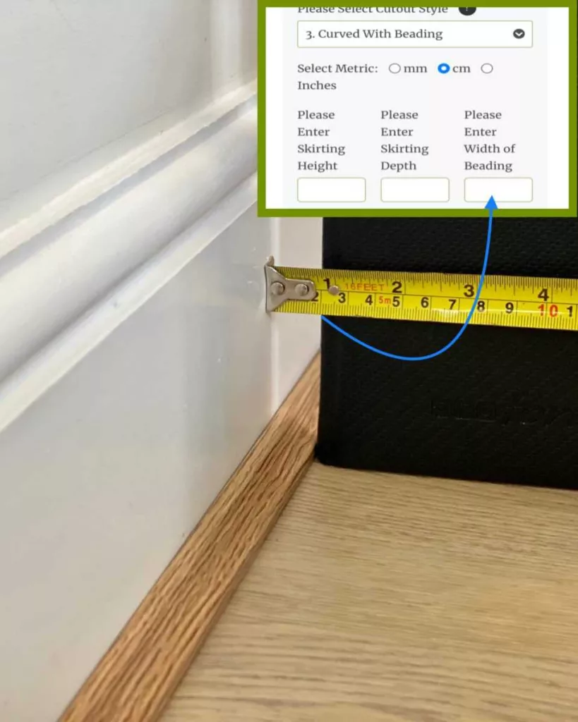 As part of the ordering process, you will be asked to select a skirting board cutout shape and enter the relevant measurements.