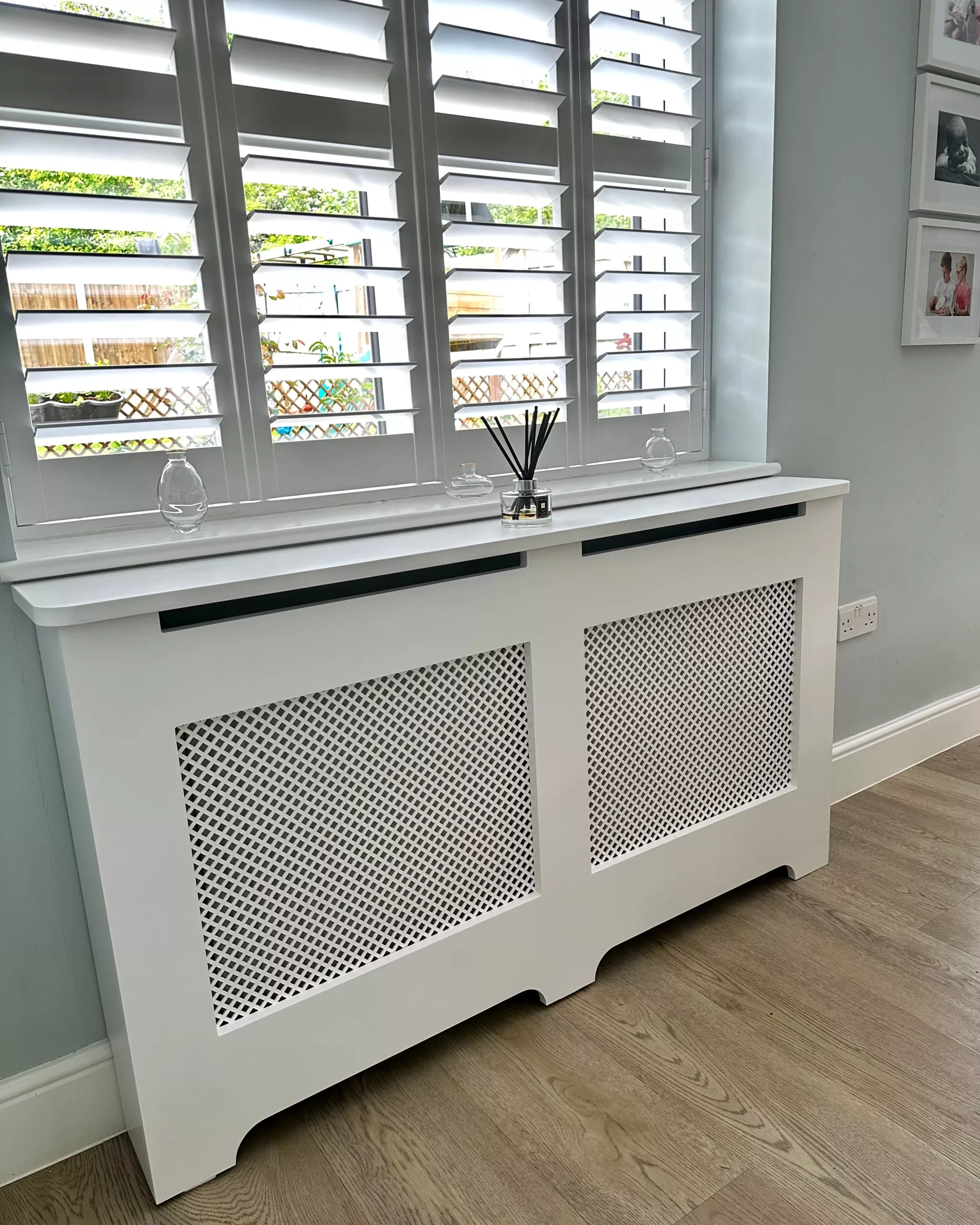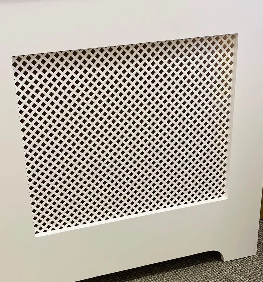 Shown here in our MDF (Stamped) material, Great value water resistant hardboard that is durable and heat stable. Slightly less defined edges compared to laser cut options. These decorative grilles are standalone inserts designed for versatile DIY use, including custom cabinetry, wall vents, and furniture upgrades.