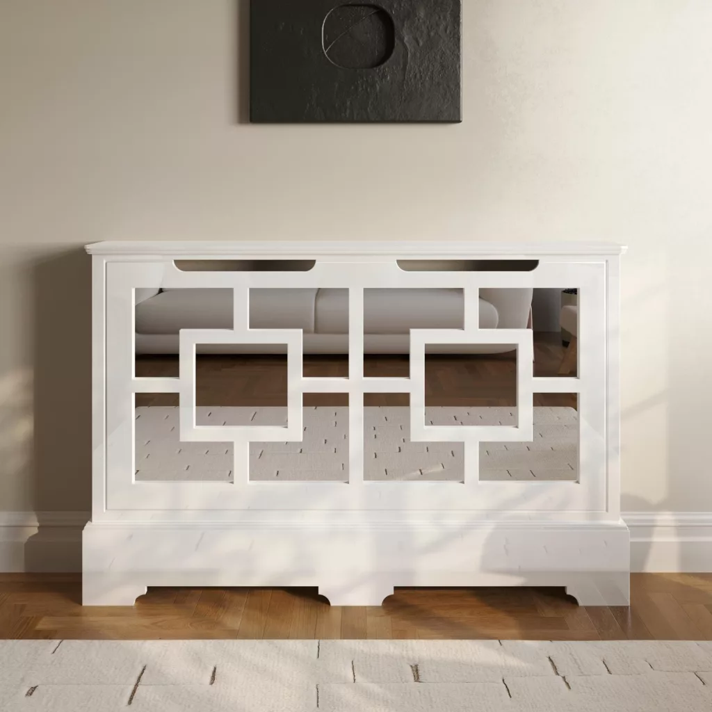 The captivating design of our Mirror cabinets makes a bold statement in any setting, and their reflective quality can brighten spaces and make them appear larger and more open. As this cabinet design features a solid front, we add vents to the top and sides to aid heat output while concealing your radiators and adding elegance to your home.